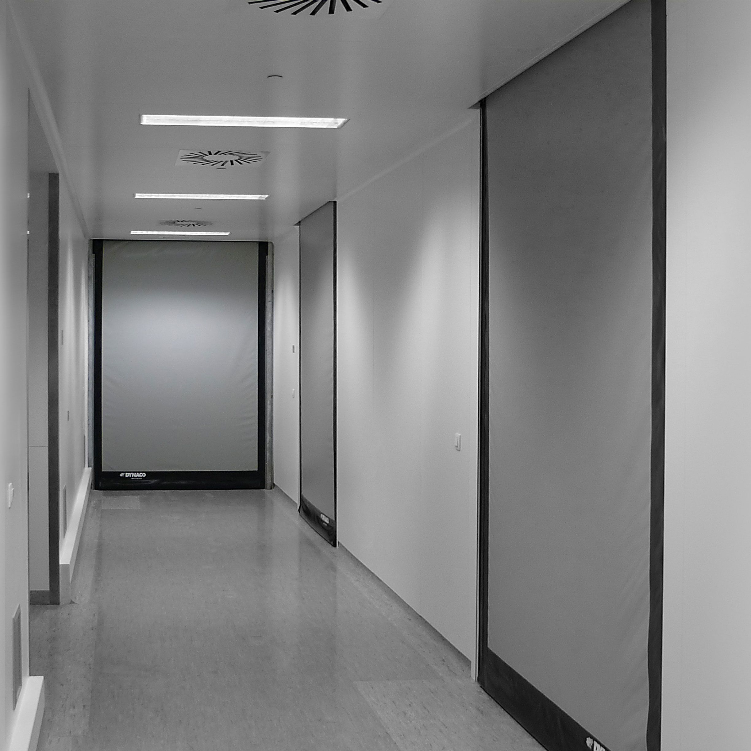 Las puertas rápidas para tus cuartos limpios son ideales para construir esclusas de aire. Su lona flexible de PVC resiste las diferencias de presión y mantiene la sala blanca en depresión o sobrepresión.