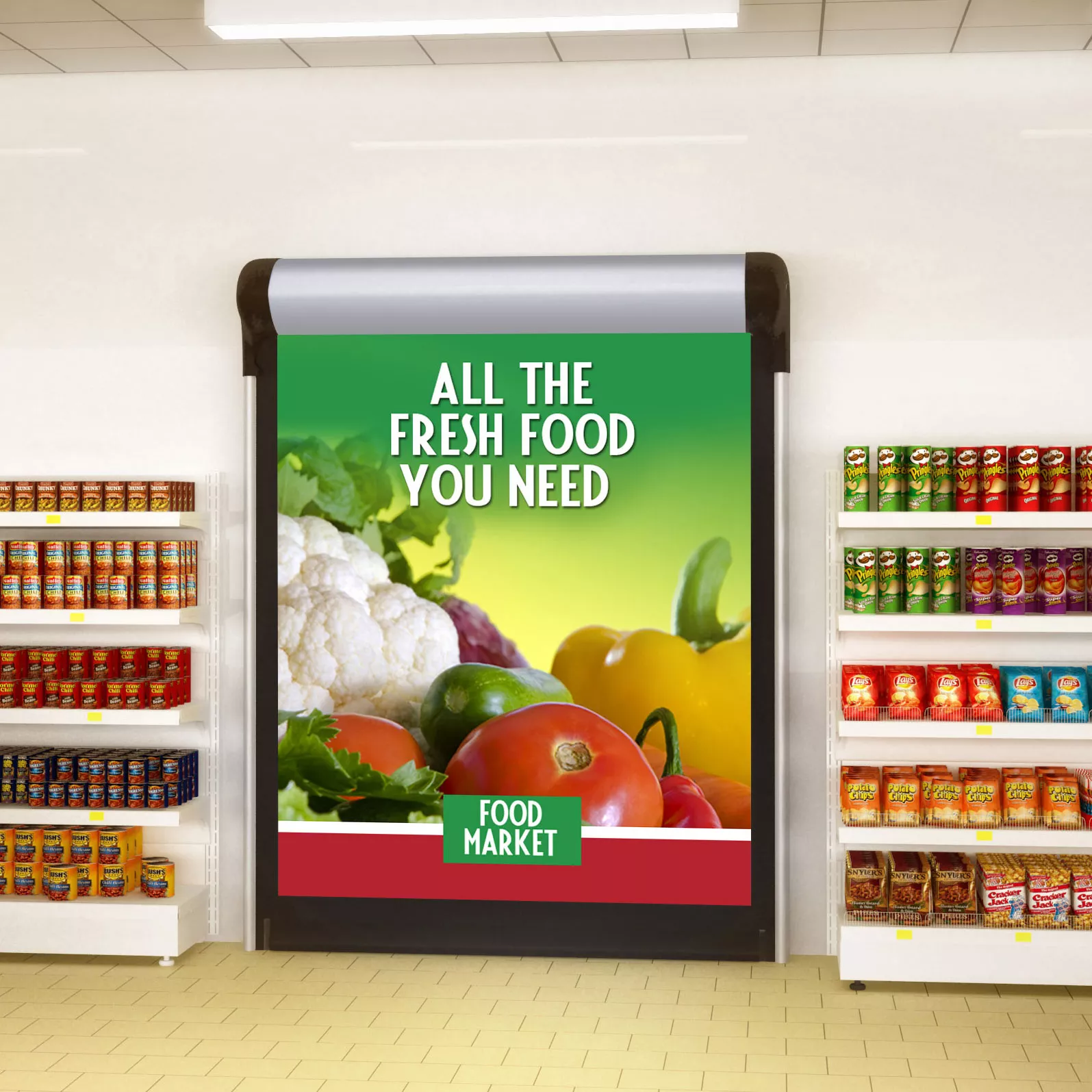 La lona flexible de PVC de la puerta rápida se puede imprimir con imágenes de sus productos o promociones, mejorando así de la experiencia de compra de sus clientes. Al carecer de elementos rígidos en la lona, esta puerta rápida es absolutamente segura.